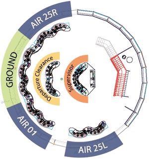 Hoewel de luchtverkeersleiders vanuit de operationele uitkijkpost een uitstekend zicht hebben op de hele luchthaven, de banen en de omgeving, zijn hun werkposities uitgerust met tal van systemen die hun een optimaal zicht bieden op de verkeerssituatie, ongeacht de zichtomstandigheden.